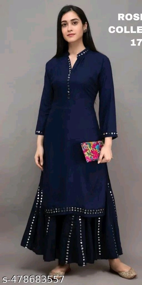 Blue Maroon Kurta Set For Woman Girl Kurti Set Women's Solid Rayon Kurta with Sharara