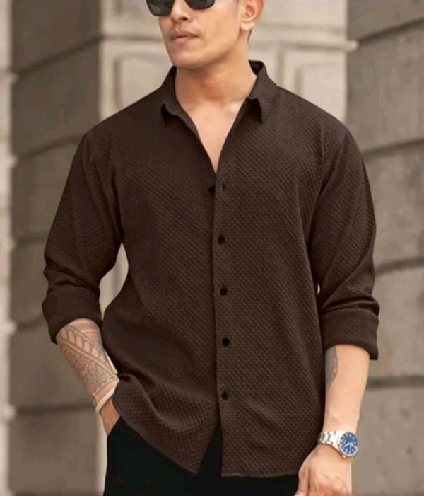 Braown Shirt Under 100 Boy Shirt Man Shirts Korian Style Shirt For Men Trendy Designer Men Shirts Name: Trendy Designer Men Shirts Fabric: Cotton Blend Sleeve Length: Long Sleeves Pattern: Striped Net Quantity (N): 1