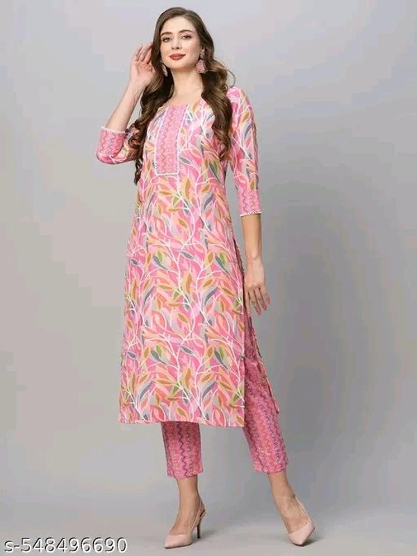 Pink cotton kurti with pent for women Name: cotton kurti with pent for women Kurta Fabric: Cotton Bottomwear Fabric: Cotton Kurta Color: Yellow Bottomwear Color: Yellow Sleeve Length: Three-Quarter Sleeves Sleeve Styling: Regular Neck: Round Length: Calf Length Pattern: Printed Print or Pattern Type: Floral Bottom Type: Pants